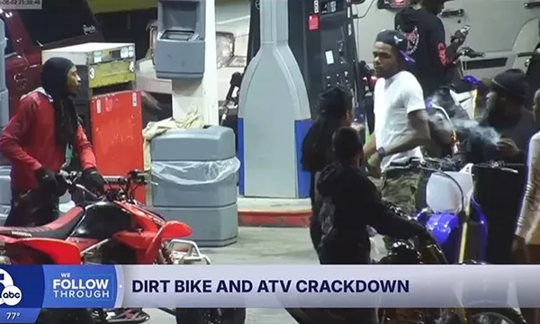 Trong đoạn phim của Trung tâm Tội phạm Thời gian thực, người ta thấy những người đi xe ATV tăng tốc đâm vào những chiếc xe ngược chiều và gây tắc đường trong khi đổ xăng tại một trạm xăng gần đó.