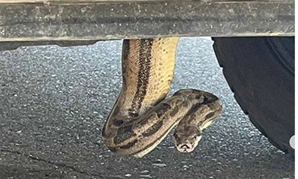 Lính cứu hỏa ở bang Arizona đã xử lý một trường hợp gọi báo khẩn cấp bất thường khi một tài xế xe tải chạy đến Scottsdale từ Mesa bỗng phát hiện một con trăn Nam Mỹ lớn thò đầu ra khỏi gầm xe bán tải của ông.