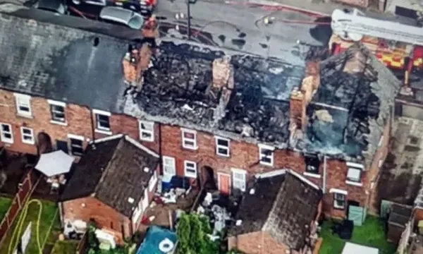Hiện trường vụ thuốc lá điện tử phát nổ thiêu rụi nhiều ngôi nhà ở Anh.