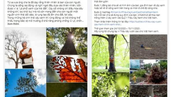 Cũng có rất nhiều bài đăng tham gia chiến dịch với lời kêu gọi hãy cùng trồng cây và bảo vệ thiên nhiên, vì đó là cách con người bảo vệ cuộc sống của mình trước thiên tai, biến đổi khí hậu. “Trồng thêm một cây xanh, đồng nghĩa chúng ta đã gieo vào đó một mầm xanh hy vọng.” – chia sẻ của Facebook Nguyen Khanh.