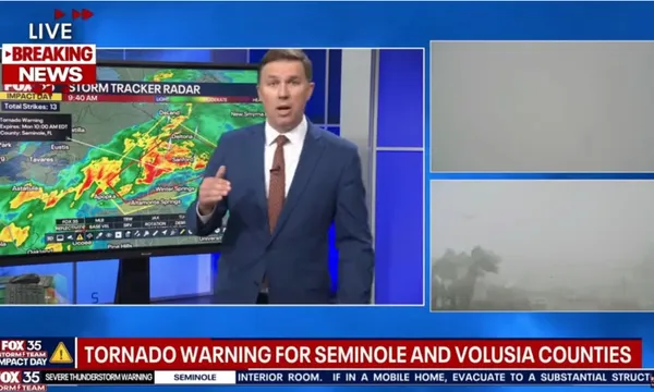 Nhà khí tượng học Brooks Garner, từ kênh WOFL Fox 35 có trụ sở tại Orlando, đang cập nhật tình hình thời tiết khắc nghiệt tại Sunshine State vào ngày 10/3 thì nhận thấy một cơn lốc xoáy đang hướng thẳng đến trường quay truyền hình.