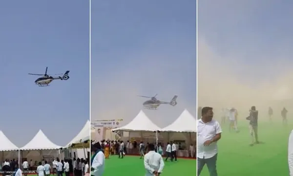 Một chiếc trực thăng hạ cánh tại một lễ hội nông dân ở Nizamabad đã gây ra một vụ tai nạn nhỏ, gây hoảng loạn và khiến một số người bị thương nhẹ, bao gồm cả nông dân và cảnh sát.