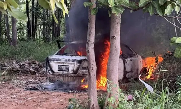 Cảnh sát tại đồn Dan Khun Thot nhận được báo cáo về vụ cháy xe vào khoảng 9 giờ 30 phút sáng tại Ban Noi.