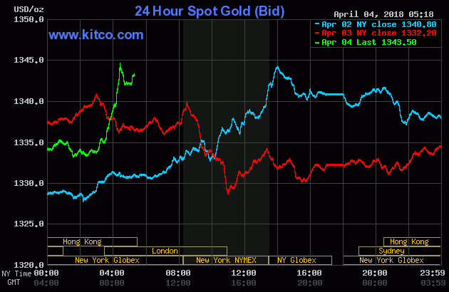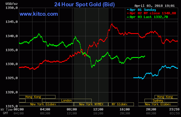 Giá vàng thế giới trên sàn Kitco giao dịch ở mức 1332.60 - 1345.60 USD/ounce.