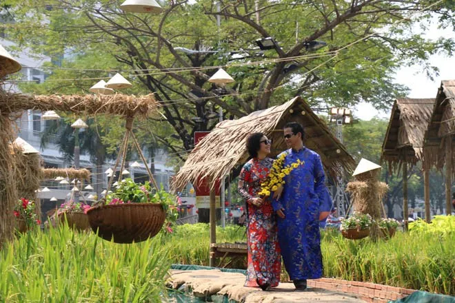 Khung cảnh làng quê yên bình tại Hội Hoa xuân Phú Mỹ Hưng (Ảnh: Eva)