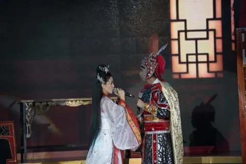 Thiện Nhân - Cao Công Nghĩa trong phần biểu diễn Chuyện Đêm Mưa.