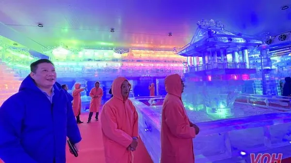 Ông Hoàng Văn Bá, Giám đốc Công viên Văn hóa Đầm Sen cho biết, để tạo nên những tác phẩm điêu khắc đá kỳ vỹ này, đơn vị đã sử dụng hơn 1000 tấn nước đá, trên 2000 bóng đèn Led thắp sáng nghệ thuật bên trong cùng nhiều kỹ sư từ Cáp Nhĩ Tân (Trung Quốc) và Việt Nam.