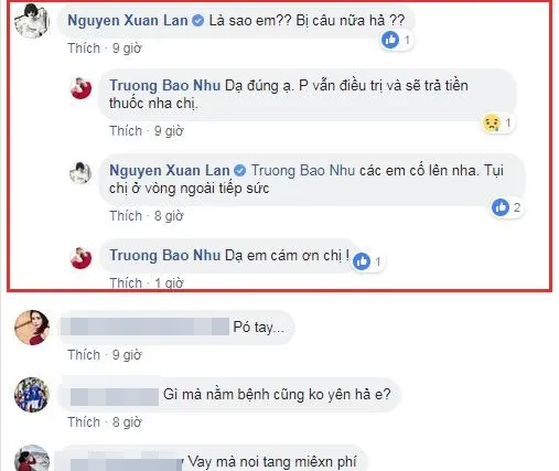 Tuy nhiên, việc được tặng thuốc điều trị ung thư miễn phí hoàn toàn không đúng sự thật và bạn thân Mai Phương - Trương Bảo Như đã lên tiếng nói sự thật. Nữ ca sĩ đã viết: "Không có chuyện được tặng thuốc miễn phí đâu ạ". Ngay sau dòng trạng thái của Bảo Như chia sẻ có rất nhiều quan tâm và đặt câu hỏi.