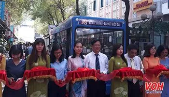 Sáng 21/4, đúng vào dịp kỷ niệm Ngày sách Việt Nam 21/4, Công ty Đường sách TPHCM phối hợp Sở Giao thông vận tải TPHCM tổ chức lễ khánh thành bộ ba sản phẩm: xe buýt sách – mô hình thư viện thu nhỏ; trạm chờ xe buýt – mô phỏng trạm chờ hiện đại, trang bị kệ sách tại chỗ và bảng tra cứu thông tin điện tử tại Đường Sách TP.HCM. Đây là mô hình “xe buýt sách” lần đầu tiên xuất hiện tại TPHCM.