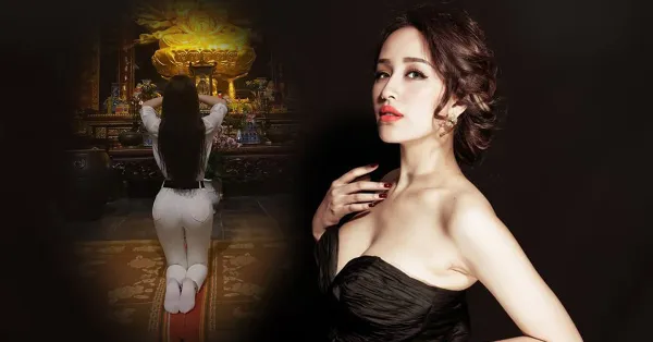 Không biết đi chùa là chính hay vào chùa tạo dáng là chính mà Thư Dung lại đi bái Phật bằng tư thế "tạo nét" đến thế.