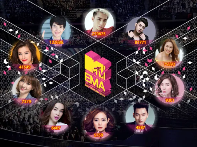 Hiện tại, thông qua hệ thống bình chọn,MTV đã tìm đã tìm ra được 10 gương mặt nghệ sĩ sáng giá đại diện Việt Nam tham gia cuộc chiến âm nhạc lớn nhất hành tinh này: Mỹ Tâm, Hồ Ngọc Hà, Đông Nhi, Sơn Tùng MTP, Noo Phước Thịnh, Vũ Cát Tường, Bảo Thy, Issac, Minh Hằng, Hari Won. Hiện Sơn Tùng đang có số lượng bình chọn cao nhất và cách xa 9 gương mặt còn lại.