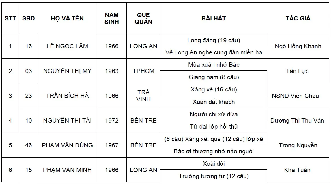 Danh sách các thí sinh tham gia chương trình chiều nay