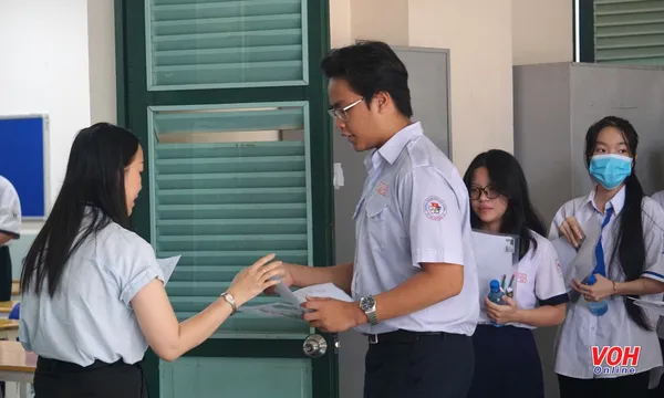TPHCM - Đúng 14 giờ chiều nay (25/6), tất cả thí sinh dự thi tốt nghiệp THPT năm 2025 đến điểm thi làm thủ tục dự thi, nghe phổ biến quy chế, trước khi bước vào kỳ thi trong hai ngày 26-27/6.