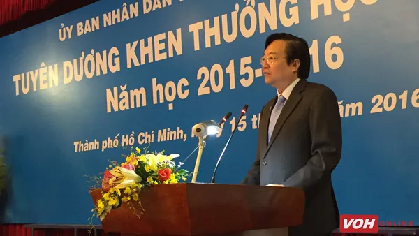 Ông Lê Hồng Sơn- Giám đốc Sở GD-ĐT phát biểu tại Lễ Tuyên dương khen thưởng Học sinh giỏi năm học 2015-2016