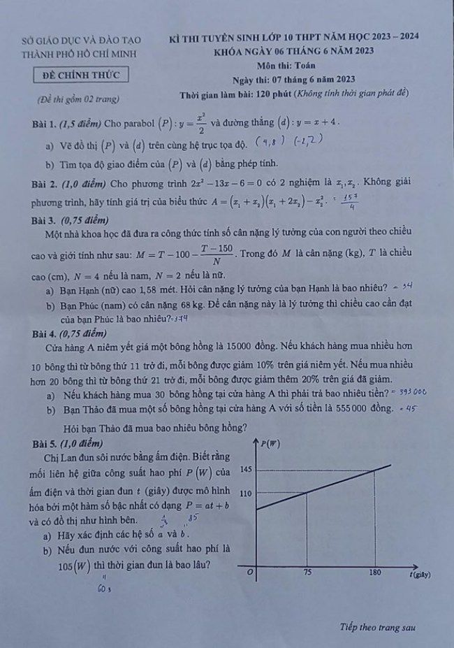 Theo Sở GD&ĐT TPHCM, bài toán trong đề thi môn toán vào lớp 10 công lập đưa ra nội dung liên quan hiện tượng thực tế là quá trình đun làm sôi nước trong một ấm điện.