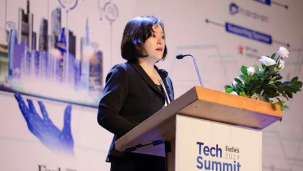 Bà Tô Thị Thu Hương - Phó Vụ trưởng Vụ Công nghệ Thông tin (Bộ Thông tin và Truyền thông) phát biểu tại diễn đàn Hội nghị Công nghệ - Tech Summit 2019.