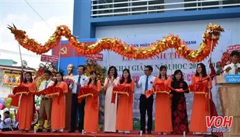 Lãnh đạo Thành phố cắt băng khánh thành trường THCS Cữu Long