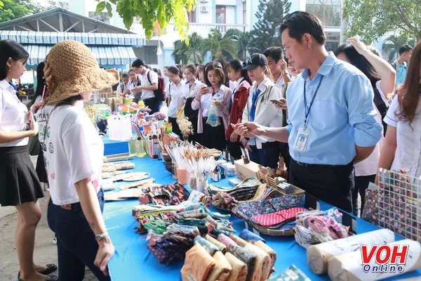 Học sinh, sinh viên, cán bộ giảng viên tham qua các gian hàng trưng bày sản phẩm sinh thái và tái chế