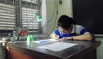 Để tổ chức thi cho thí sinh đặc biệt này, điểm thi đã bố trí phòng thi gồm 2 cán bộ coi thi và một số vật dụng hỗ trợ thí sinh trong quá trình làm bài gồm đèn chiếu, kính lúp, máy ghi âm và camera quan sát.