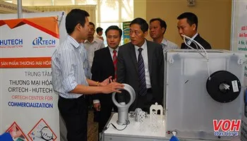 Thứ trưởng Bộ KH-CN Trần Văn Tùng tham quan Sản phẩm mới Quạt không cánh dùng công nghệ 3D của trường ĐH Công Nghệ TPHCM.