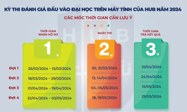 Trong đó, đợt 1 thí sinh có thể đăng ký dự thi từ ngày 26/2 đến ngày 15/3. Thời gian thi vào ngày 30 - 31/3. Ba đợt thi còn lại sẽ diễn ra vào các ngày: Đợt 2 ngày 13 - 14/4; Đợt 3 ngày 4 - 5/5; Đợt 4 ngày 18 - 19/5.