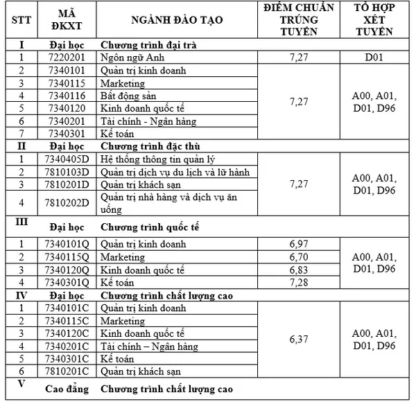Điểm chuẩn trúng tuyển nêu trên là điểm trung bình cộng của các môn học năm lớp 12 THPT trong tổ hợp xét tuyển, không nhân hệ số, đã bao gồm điểm ưu tiên thuộc tất cả các khu vực, đối tượng. Áp dụng điểm chuẩn trúng tuyển cho các tổ hợp xét tuyển của ngành.