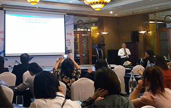 Tiến sĩ, Bác sĩ Phạm Hoàng Vân, Chủ tịch Hội Vi sinh Lâm sàng TPHCM phát biểu tại hội thảo.