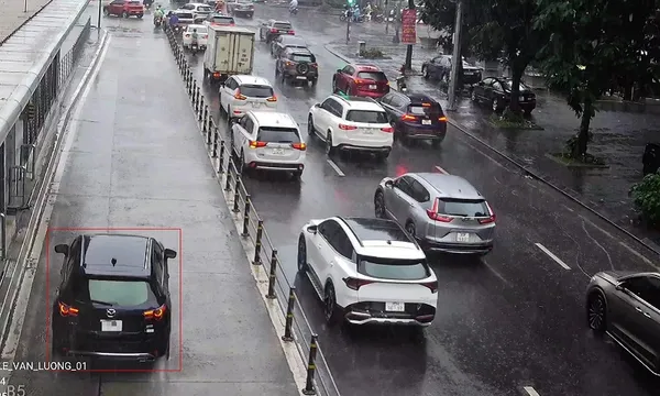 Tại đường Lê Văn Lương, camera AI phát hiện 14 ô tô đi sai làn đường.