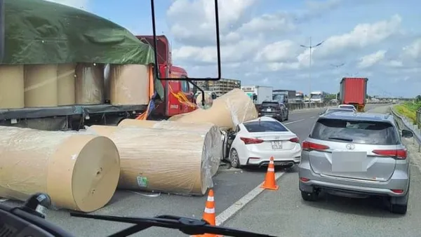 Cuộn giấy đè nát xe ôtô con trên cao tốc TPHCM – Trung Lương