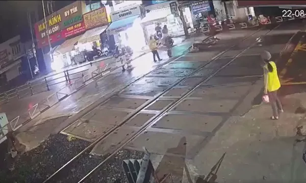 Theo toàn cảnh vụ việc được camera ghi lại, thời điểm này khi hai nhân viên gác chắn đang kéo barie khép hai chiều đường để chuẩn bị cho đoàn tàu đi qua thì bất ngờ một nam thanh niên phóng xe máy đến, không kịp xử lý và tông mạnh vào barie.