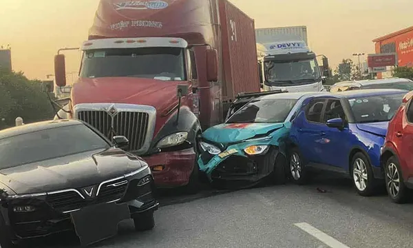 Theo thông tin ban đầu, chiều 5/9, tại cầu vượt Nguyễn Văn Linh (đoạn đối diện số 3 đường Nguyễn Văn Linh, Long Biên, Hà Nội) xảy ra vụ tai nạn giao thông liên hoàn giữa 1 xe container và 5 ô tô con.