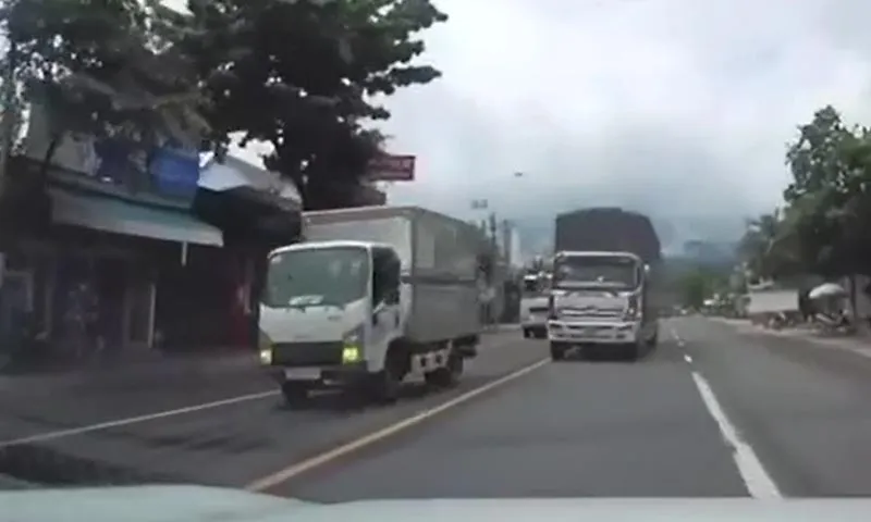 Khi đến Km94, quốc lộ 20 đoạn qua xã Đạ Huoai 2, xe tải này đã vượt nhiều phương tiện cùng chiều ngay tại đoạn đường có vạch kẻ liền - nơi cấm vượt.