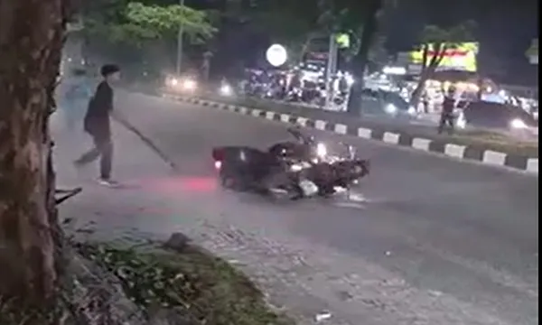Những người đi đường đã không bỏ lỡ cơ hội ghi lại khoảnh khắc khá bi hài này, trong khi một nhóm thanh niên cố gắng tách hai chiếc xe ra khỏi nhau. Một thanh niên đã sử dụng một cành cây để cố gắng làm cho xe máy dừng quay.