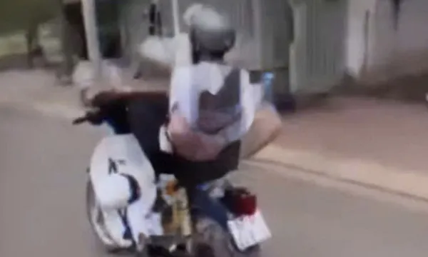 Trước đó vào ngày 2/5, lực lượng chức năng đã nhận được clip đăng trên mạng Facebook về hình ảnh một học sinh điều khiển xe gắn máy buông 2 tay và dùng chân để điều khiển xe.