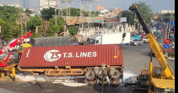 Theo thông tin ban đầu, khi xe container đi đến vòng xoay trên tuyến Đỗ Mười thì bất ngờ bị lật. Sơn từ các thùng hàng tràn ra đường, tạo nguy cơ trơn trượt cho các phương tiện lưu thông qua khu vực.