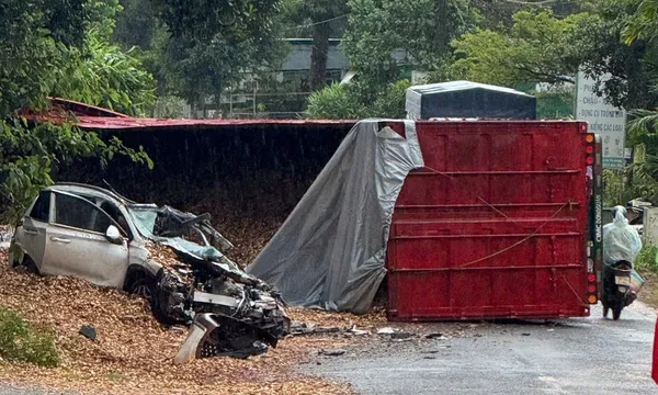 Chiều 19/11, một vụ tai nạn giao thông nghiêm trọng xảy ra trên Quốc lộ 28 đoạn qua xã Bảo Lâm 5 (tỉnh Lâm Đồng). Khoảng 16 giờ, xe container (chưa rõ danh tính tài xế) lưu thông theo hướng từ xã Quảng Khê về xã Bảo Lâm 5 thì va chạm với ôtô con 5 chỗ chạy cùng chiều.