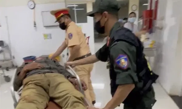 Khi đến Bệnh viện Đa khoa Bình Phước, CSGT và cảnh sát đã nhanh chóng hỗ trợ đưa nạn nhân vào phòng cấp cứu kịp thời.
