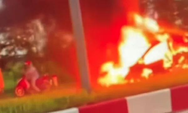 Ngọn lửa bùng lên từ phần đầu xe, sau đó nhanh chóng lan rộng và bao trùm toàn bộ phương tiện.