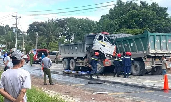 Chiều 28/7, Công an xã Thường Tân, TPHCM cùng các đơn vị nghiệp vụ công an TPHCM đã hoàn tất công tác khám nghiệm hiện trường vụ tai nạn giữa hai xe ben xảy ra trên đường ĐT746, khiến hai tài xế mắc kẹt trong cabin.