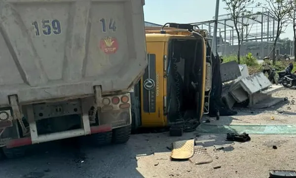 Theo thông tin ban đầu, khoảng 10 giờ sáng, xe tải Howo biển số 35C-159.1x đang di chuyển với tốc độ cao thì va chạm với xe tải biển số 98C-192.6x chở cấu kiện bê tông đúc sẵn. Cú đâm mạnh làm phần đầu xe Howo bị hư hỏng nặng, khiến tài xế mắc kẹt bên trong. Chiếc xe chở cấu kiện bê tông cũng bị lật nghiêng và đổ ra giữa đường.