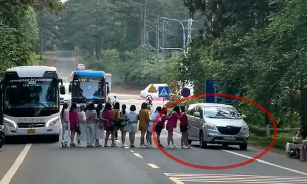 Trước đó, trên nhiều nền tảng mạng xã hội như Facebook, TikTok lan truyền clip ghi lại cảnh nhóm nữ du khách, khoảng 14 người đứng tạo dáng chụp ảnh ngay giữa Quốc lộ 24, đoạn vào thị trấn Măng Đen, huyện Kon Plông.