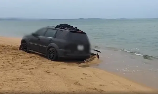 Quá trình chạy xe đã bị lún cát và phải gọi xe cẩu đến để hỗ trợ. Công an phường 4, TP Tuy Hòa đã mời tài xế về tại trụ sở để làm việc.
