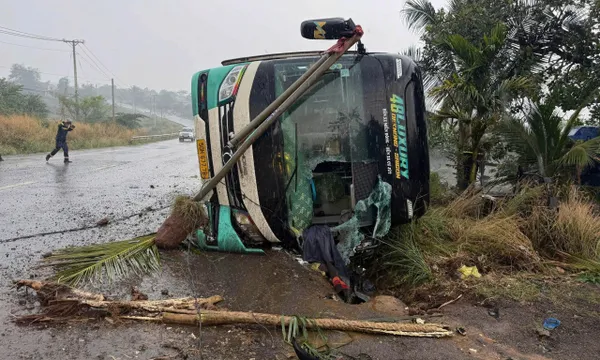 Trưa 26/2, một xe khách 52 chỗ lưu thông trên Quốc lộ 14 theo hướng từ Lâm Đồng đi Đồng Nai đã bị lật tại đoạn cong km896+300, thuộc xã Thọ Sơn.