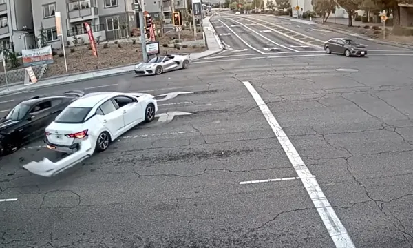 Trong khi đó, chiếc Chevrolet Corvette màu bạc đi ngay phía sau đã kịp bẻ lái, tránh được vụ va chạm và nhanh chóng rời khỏi hiện trường. Cảnh sát cho biết tài xế Corvette hiện vẫn chưa bị bắt giữ, và lực lượng chức năng đang tích cực truy tìm thông tin liên quan đến người này.