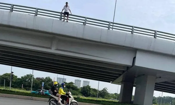 Sáng 17/6, người dân đi đường chứng kiến một người đàn ông lên cầu vượt đi vào khu đô thị thuộc địa bàn phường Tây Mỗ, quận Nam Từ Liêm, Hà Nội sau đó nhảy xuống đường.