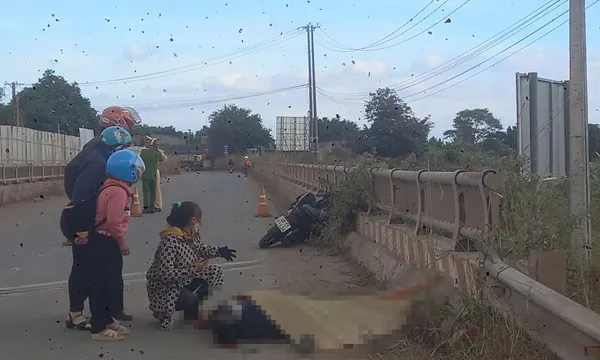 Xe máy mất lái tông vào thành cầu, người đàn ông tử vong tại chỗ. Ảnh: Báo Giao thông