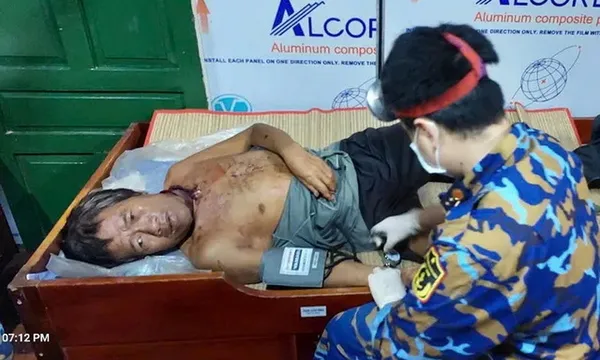 Tổ quân y đã tiến hành rửa sạch, khâu vết thương (8 mũi), băng bó cẩn thận, đảm bảo an toàn bước đầu cho bệnh nhân. Đến 21 giờ cùng ngày, nạn nhân tỉnh táo, tiếp xúc tốt, sức khỏe ổn định. Tổ quân y đã cấp thuốc và hướng dẫn tiếp tục theo dõi, đưa về bờ để khám và điều trị chuyên sâu.