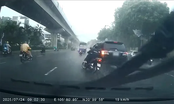 Một tình huống va chạm được 1 camera hành trình của xe đi sau ghi lại được cho là diễn ra vào ngày 24/7 trên đường Nguyễn Trãi, phường Thanh Xuân, Hà Nội.