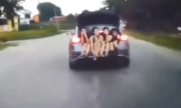 Trước đó, xuất phát từ đoạn video clip ngày 2/6, trên mạng xã hội ghi lại cảnh 1 chiếc ô tô con màu xanh, nhãn hiệu KIA Cerato mang biển số 20A-518.83, chở 4 người nữ ngồi trên cốp để hành lý phía sau xe ô tô, chân thò ra ngoài đuôi xe.