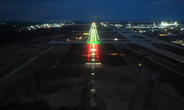 Hệ thống đèn hiệu hàng không đường băng thứ nhất của sân bay Long Thành đã hoàn thành và vận hành thử nghiệm thành công - Ảnh: ACV